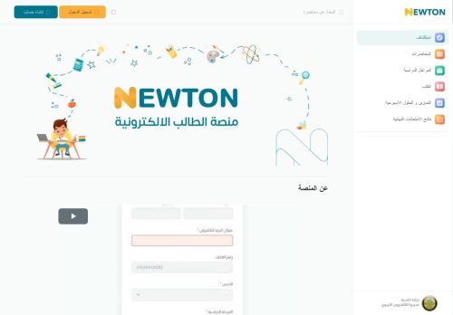 وصف الموقع: منصة نيوتن التعليمية هي منصة إلكترونية للتعليم عن بعد اطلقتها وزارة التربية العراقية تنفيذا لقرارات خلية الأزمة لمواجهة جائحة كورونا ولضمان ديمومة العملية التعليمية والتربوية.