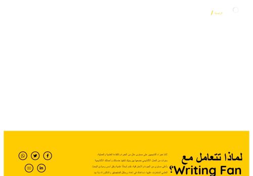 وصف الموقع: شركة Writing Fan أفضل شركات كتابة وعمل وإعداد رسائل الماجستير والدكتوراه والابحاث العلمية، حيث تقدم كافة الخدمات العلمية الخاصة بعمل رسائل الماجستير والدكتوراه مثل خدمات الكتابة والتنسيق والتحضير بشكلٍ متكامل من الألف إلى الياء، كما يقدم مركز رايتنج فان خدمات عمل مشاريع التخرج وعمل بحوث التخرج باحترافية وخبرة عالية على يد أكاديميين ومحترفين ومتخصصين من ذوي الخبرة والكفاءة.