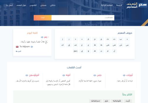 وصف الموقع: يتألف المعجم المعاصر من 80,000 مدخل رئيسي تقريبا، وقد قُرِن كل مدخل بمقابله الإنجليزي، ورُصِدَ له معناه أو معانيه، وزُوِّدَ بمثال توضيحي أو أكثر، كما أورد المعجم لكل مدخل ما قد يندرج تحته من مداخل فرعية سواء كانت من قبيل المسكوكات، أو المتلازمات. ولمزيد من إثراء المحتوى المعجمي للمدخل الواحد فإن المعجم قد ربط بينه وبين المداخل الأخرى المرادفة له والمتضادة معه. أما السمات اللغوية لكل مدخل فهي أحد العناصر الأساسية التي أولاها المعجم اهتماما بارزا، حيث يذكر لكل مدخل سماته اللغوية، فأمام المدخل الفعلي يذكر له من البيانات الصرفية ما يلي: (قسم الكلم – الجذر – الميزان – تصريف الفعل- المشتقات) ، ومن البيانات المعجمية ما يلي: (الموضوع أي مجال الاستخدام – مستوى الشيوع)، أما المدخل الاسمي فيذكر أمامه من البيانات الصرفية ما يلي: (قسم الكلم – الجذر – الميزان – جمع التكسير) ، ومن البيانات المعجمية ما يلي (النوع - الموضوع أي مجال الاستخدام – مستوى الشيوع)، أما المداخل الوظيفية فيذكر أمامها من البيانات الصرفية ما يلي: (قسم الكلم – الجذر) ، ومن البيانات المعجمية ما يلي: (الموضوع أي مجال الاستخدام – مستوى الشيوع).