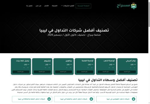 وصف الموقع: منصة سراج لتقييم وتصنيف شركات التداول الموثوقة والخدمات المالية في ليبيا.