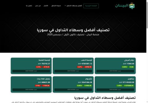 وصف الموقع: منصة البيان لمراجعة شركات التداول وتقديم معلومات مالية موثوقة للمستثمرين في سوريا.